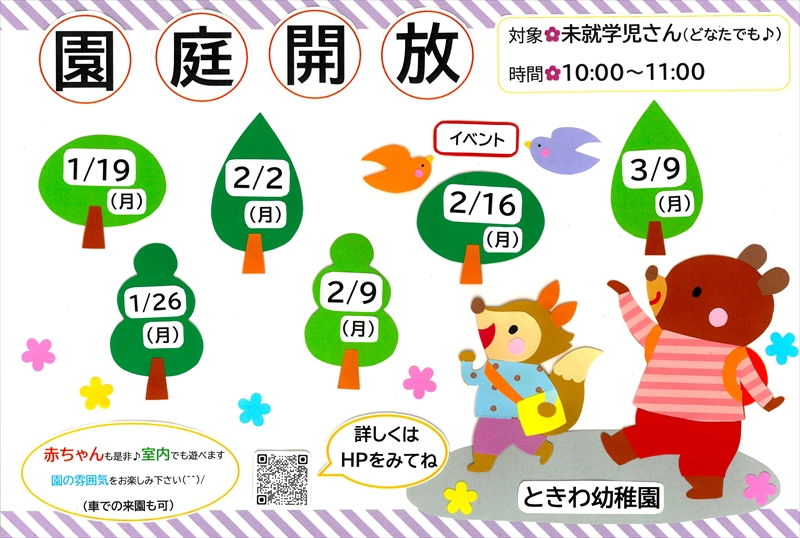 2025. 12. 15 未就園児対象の園庭開放情報(お知らせ掲示板)を更新しました。